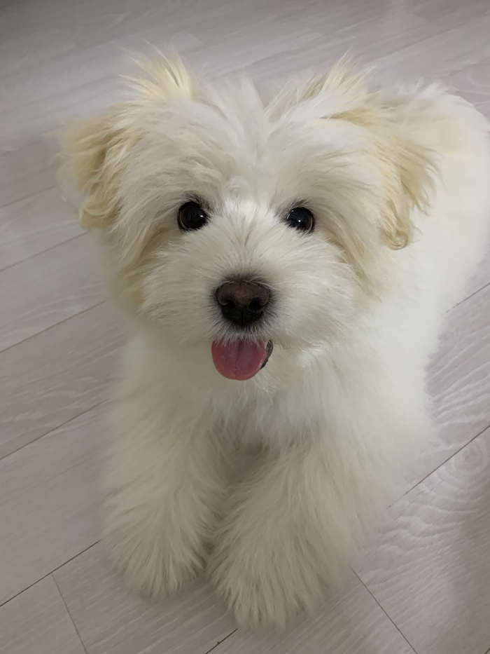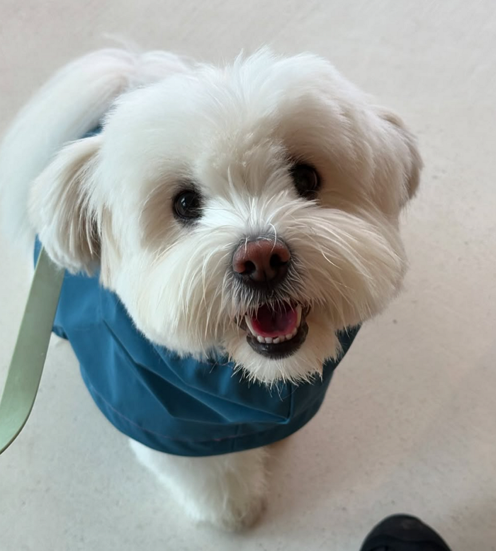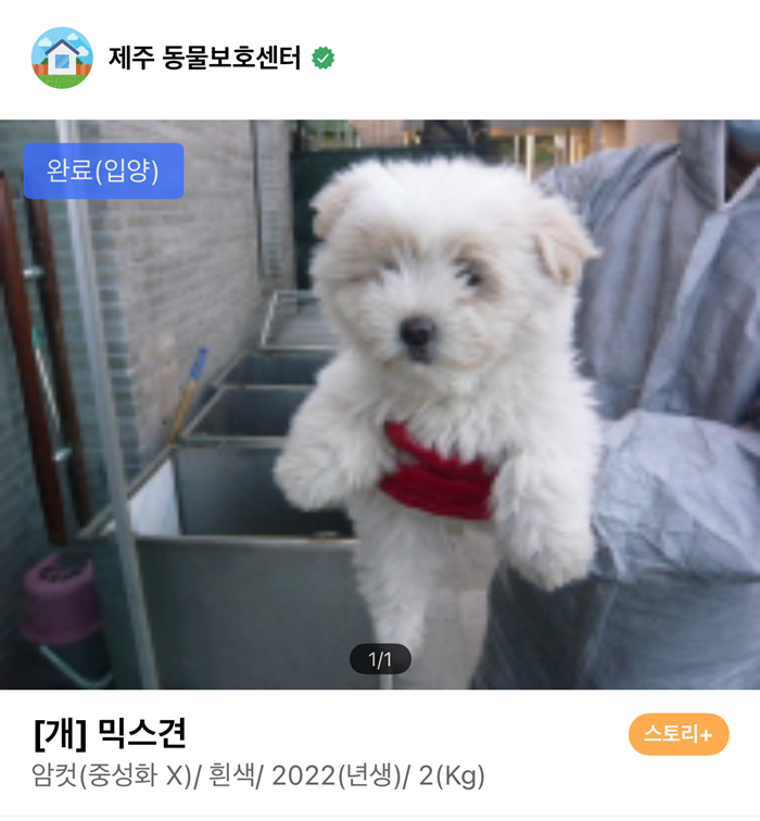 루이는 제주시 보호소에서 만났어요. 처음에는 다른 강아지 입양 공고를 보고, 그 강아지를 만나러 간 거였어요. 문을 열자 눈앞에 딱 마주친 강아지가 있었는데, 그게 루이였죠. 작고 흰 솜뭉치가 어디가 아픈지 영 기운이 없어 보이더라고요. 가까이 다가가니 아픈 몸을 일으켜 꼬리를 흔들었어요. 마음에 계속 남아서 한 번 더 보고자 일주일 뒤에 다시 방문했어요.