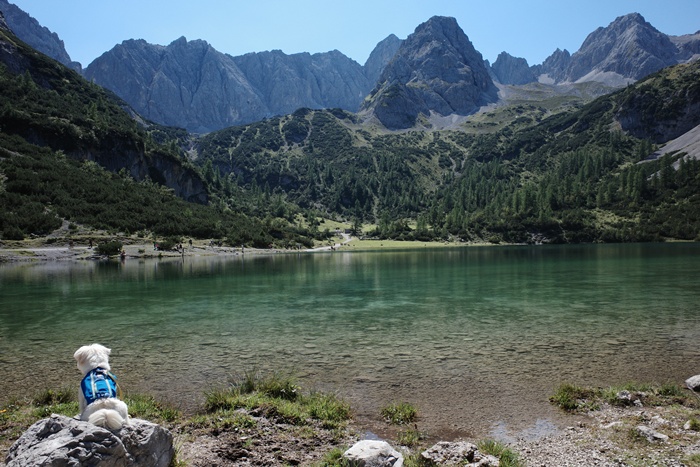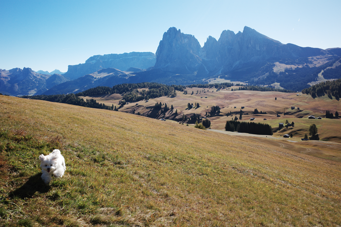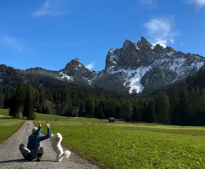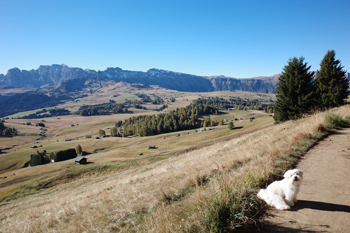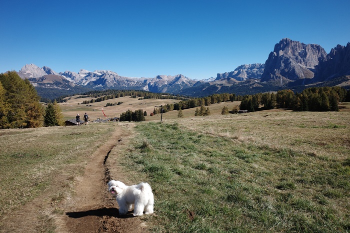 루이가 가장 신나했던 건 이탈리아 돌로미티 지역이었습니다. 매일 산을 걸었는데 짐도 가볍고, 오르막 내리막도 심하지 않아 거의 날아다녔던 것 같아요. 아 물론 저 말고 강아지만요. TMB는 하루에 걷는 거리가 꽤 길었고, 짐도 많아서 루이도 얄짤없이 배낭에 본인 물을 지고 걸었거든요. 🐶 그거에 비해 돌로미티는 모두 당일치기 트레킹이었고, 날씨도 추워서 루이가 걷기에 훨씬 수월했던 것 같아요.