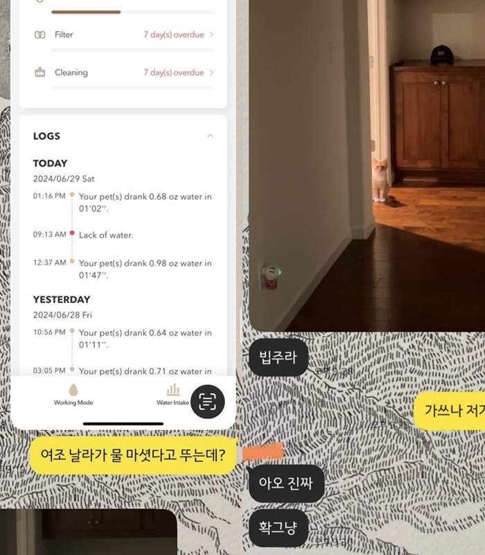 ๋จํธ๋ ์ ๋ ๋ ๋ผ๊ฐ ์ง์ผ๋ก ๋ค์ด์จ ๊ฑธ ๋ชฐ๋๋๋ฐ, ์ ์๊ธฐ ๋๋ถ์ ๋ ๋ผ์ ๊ทํ์ ์์์ต๋๋ค. ๋ ๋ผ๋ ์ด์ด๋ ๋ท๋ง๋น ๋ฌธ์ ํตํด ๋ค์ด์ ๋ฐฅ๋ ๋จน๊ณ , ๋ฌผ๋ ํ ์ฌ๋ฐ ์์ํ๊ฒ ์ ์ท ํ์ด์. ์ ํฌ ์ง ์ ์๊ธฐ๊ฐ ์ค๋งํธ ์ ์๊ธฐ๋ผ ๊ณ ์์ด๊ฐ ๋ฌผ์ ๋จน์ผ๋ฉด ์์๋ ์๋ฆผ์ด ๋จ๊ฑฐ๋ ์. ํจ๋์ ๋น ์ ธ์๋ ์ค ํธ๋ํฐ์ผ๋ก ๋ ๋ผ๊ฐ ๋ฌผ์ ๋ง์