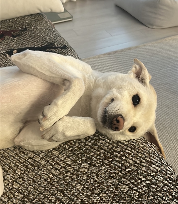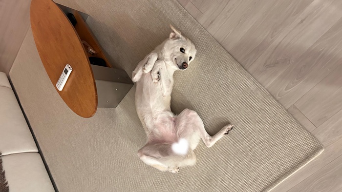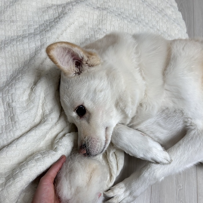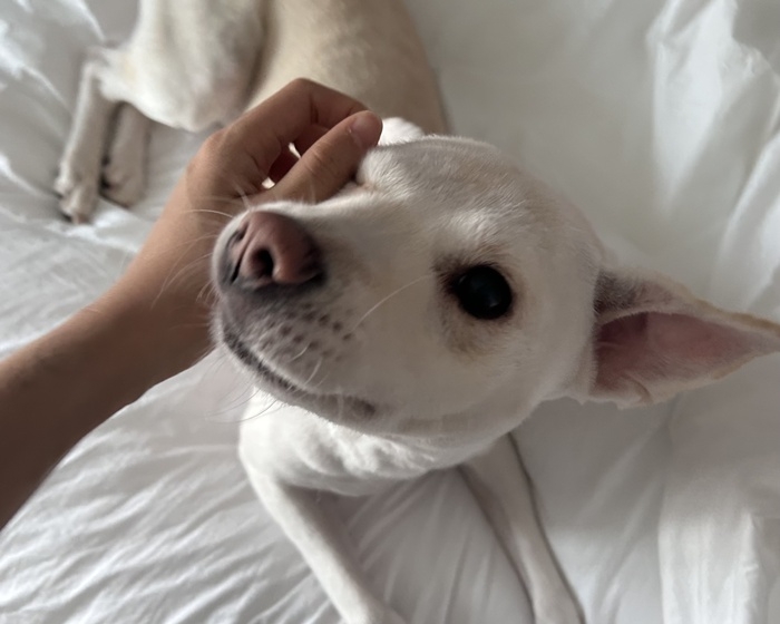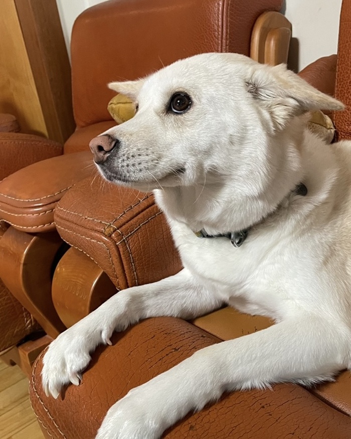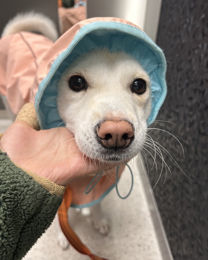 - 하이는 앞에서 보면 영락없이 흰색 강아지인데, 등을 보면 노릇한 식빵처럼 털이 구워져있어요. 털도 아주 부드러워서 쓰다듬으면 실크를 만지는 것 같아요!
