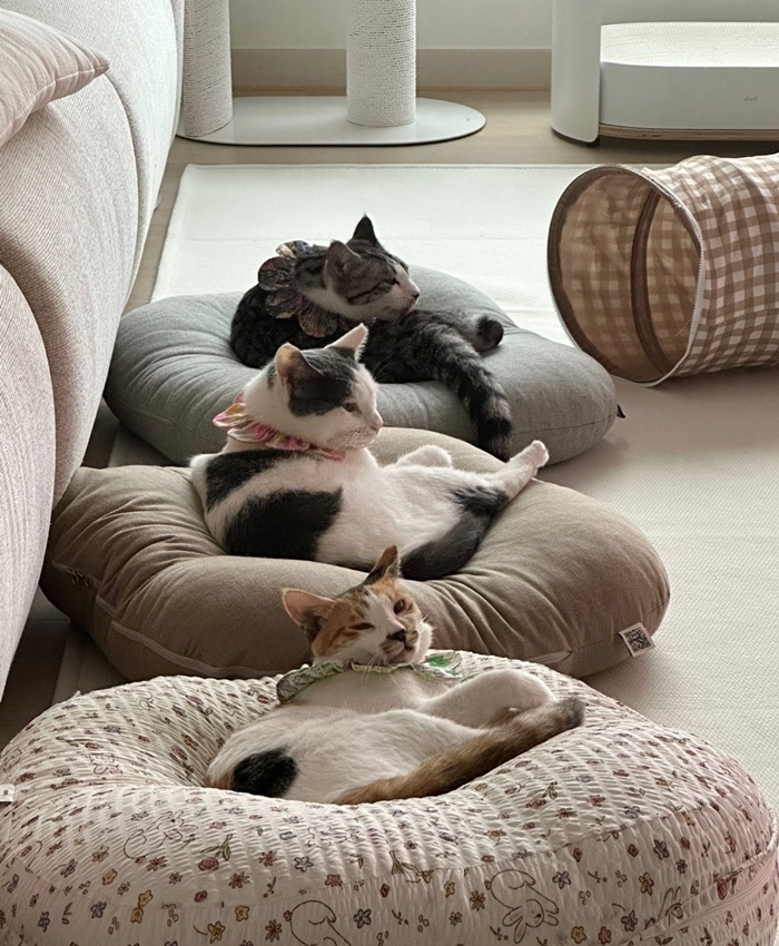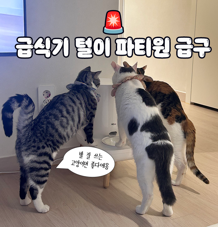 ๊ณ ์์ด๊ฐ ๋ค ๋ง๋ฆฌ๋ผ ๋ชจ๋ ๊ฒ ๋ค ๋ฐฐ๋ ํ๋ค๋ฉด์๋ ํ๋ณตํด์.๐