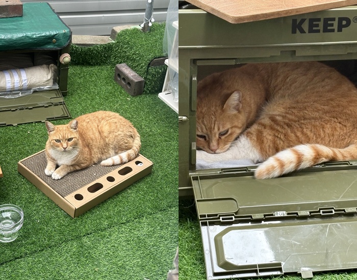 뿌링이 집사는 뿌링이 입양 전에도 외부에 인조 잔디를 깔고 스크래처 등을 구비해 놨답니다. |