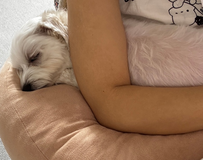 저의 부족한 정서적인 부분을 사랑💖으로 꼬오옥 채워주는 강아지인 또비가 있어, 너무 행복해요. 또비는 제가 스무 살 때부터 지금까지 서로 의지하며 함께 해온, 저에게는 유일한 가족입니다.